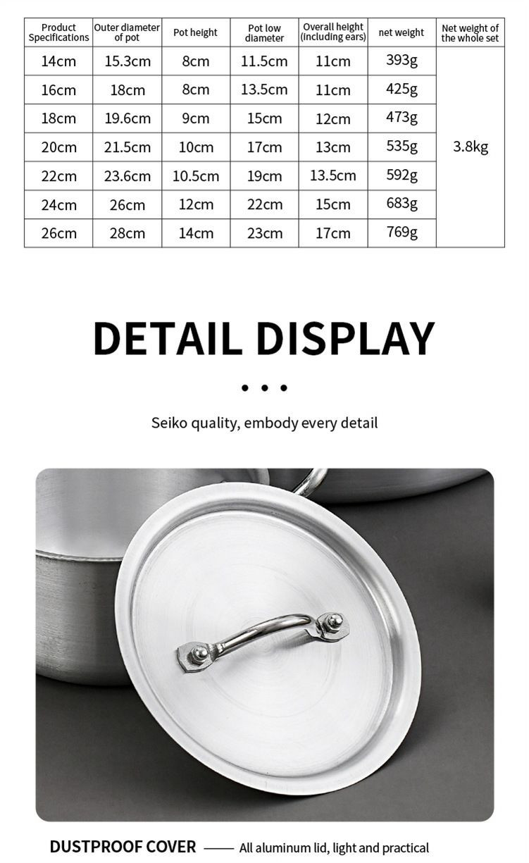 7 pièces de casseroles a usage de cuisine extérieure Suise en aluminium Pot de soupe Pot en aluminium Ensemble de pot 7in1