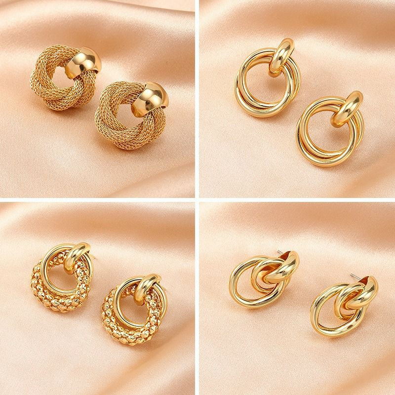 Boucles d'oreilles légers de luxe légers simples, boucles d'oreilles creuses tempérament cercle d'enroulement multicouche en or, glamour luxueux, uniques, tendance, élégantes