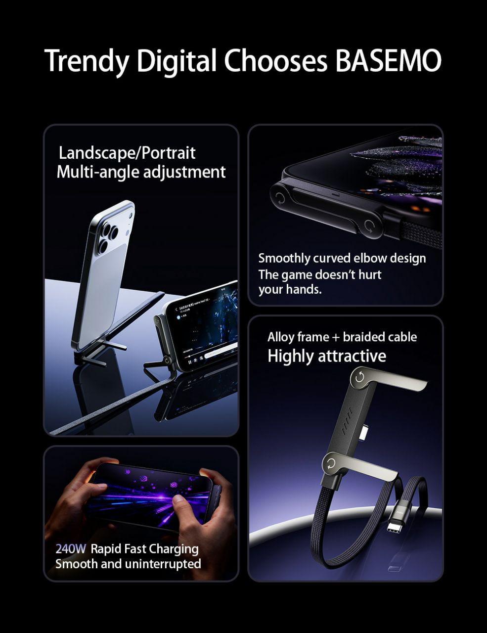 Conception multifonctionnelle : Comprend un support de téléphone pliable intégré pour visionner des vidéos en mode paysage ou portrait.